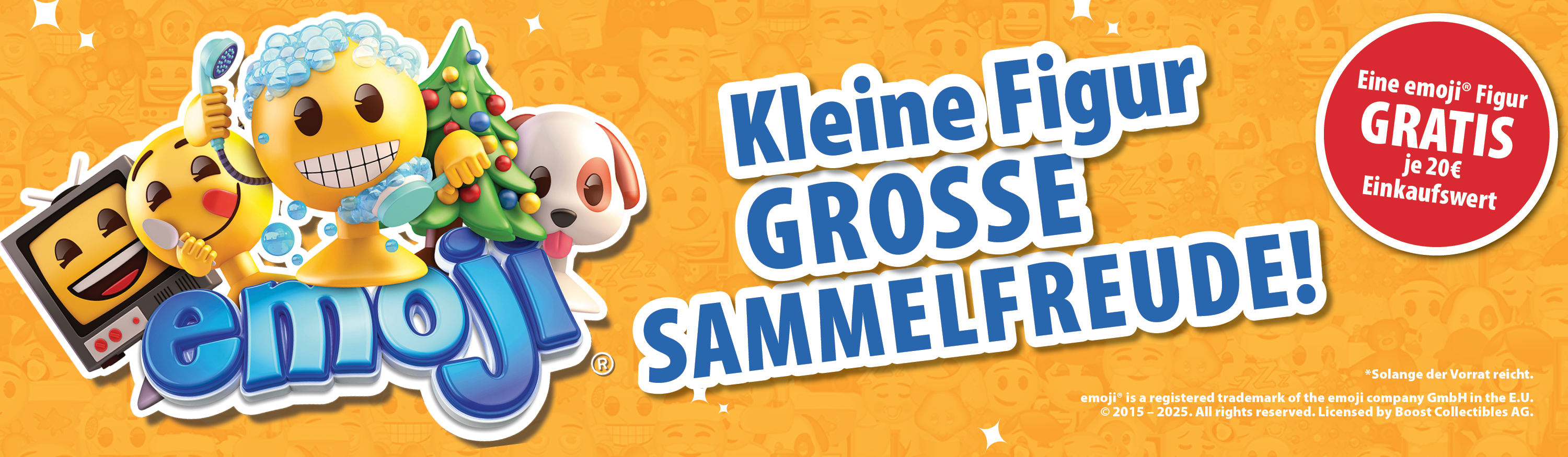 *Solange der Vorrat reicht. Bis max. 200 € Einkaufswert und 10 Figuren je Einkauf. Nicht für Kinder unter 3 Jahren geeignet. Kleinteile. Erstickungsgefahr. emoji® is a registered trademark of the emoji company GmbH in the E.U. 2015-2025. All rights reserved. Licensed by Boost Collectibles AG.