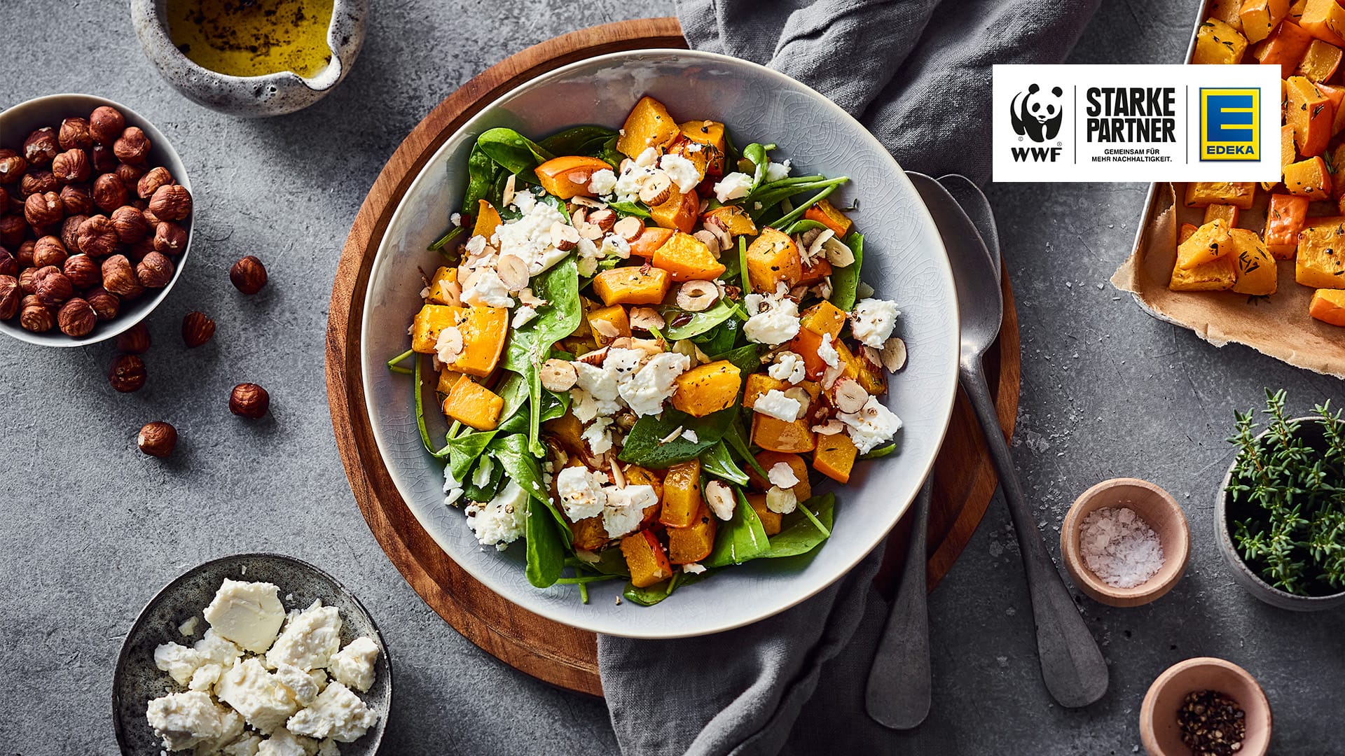 Lauwarmer Kürbis-Spinat-Salat mit Haselnüssen