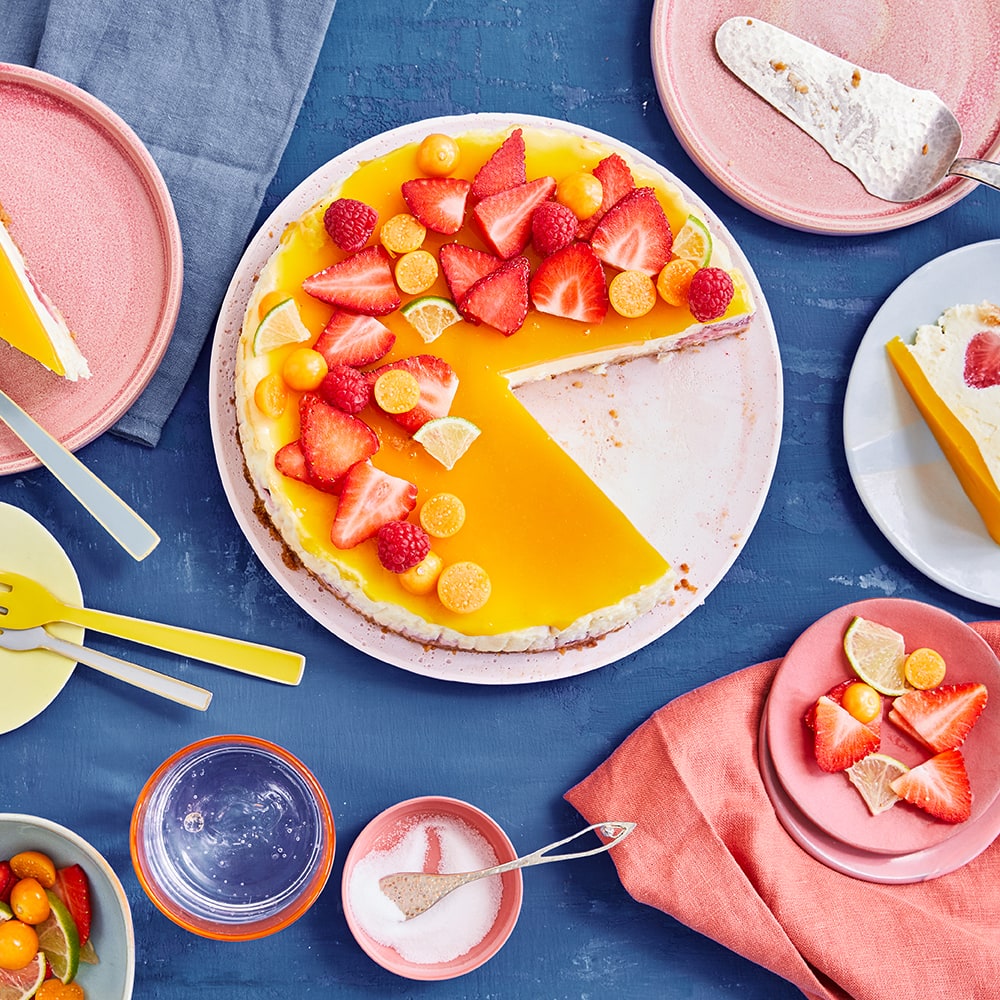 Die Creme auf den abgekühlten Keksboden geben und gleichmäßig verstreichen. Für mindestens 1 Stunde im Kühlschrank festwerden lassen.