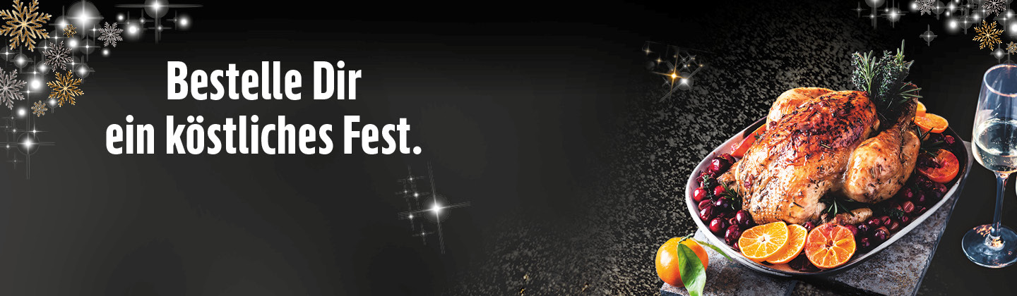 Ob Gans, Ente, Wild oder Kaninchen. Ob Brust oder Keule mit unserer Online-Bestellung kannst du bis Samstag, den 06.12.2025 deinen Festtagsbraten ganz einfach aufgeben. Oder du gibst den Bestellschein bei uns im Markt ab. - Genieße so entspannte Weihnachtsfeiertage mit der Familie.