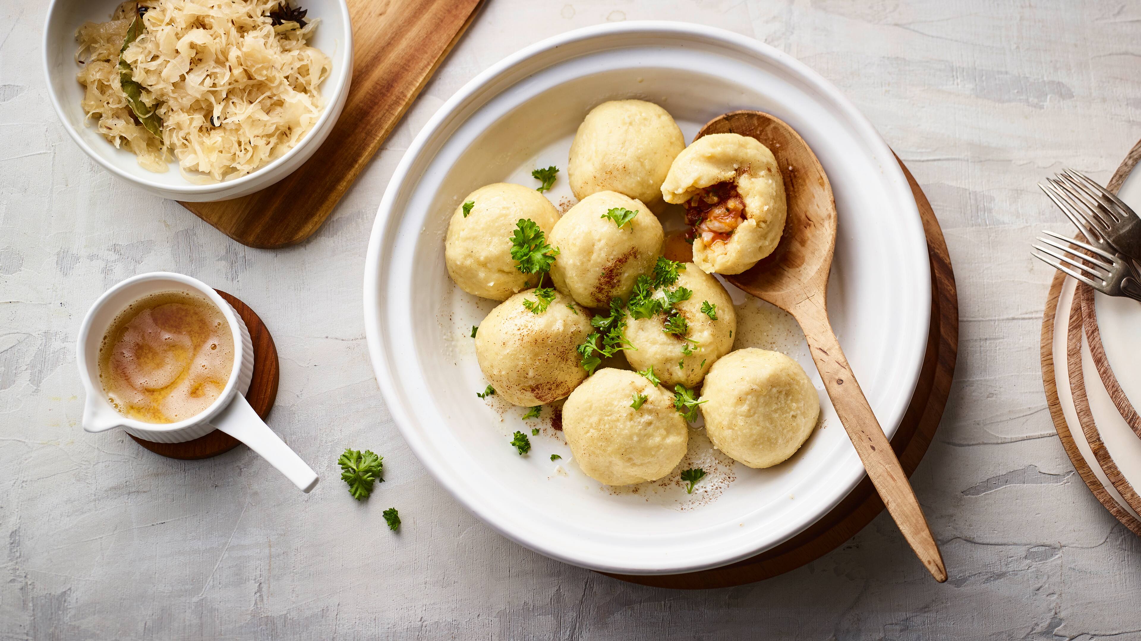 Butter in einem kleinen Topf bei mittlerer Hitze zerlassen, bis diese braun wird. Von der Herdplatte ziehen. Grammelknödel mit Sauerkraut anrichten und mit brauner Butter und Petersilie garniert servieren.