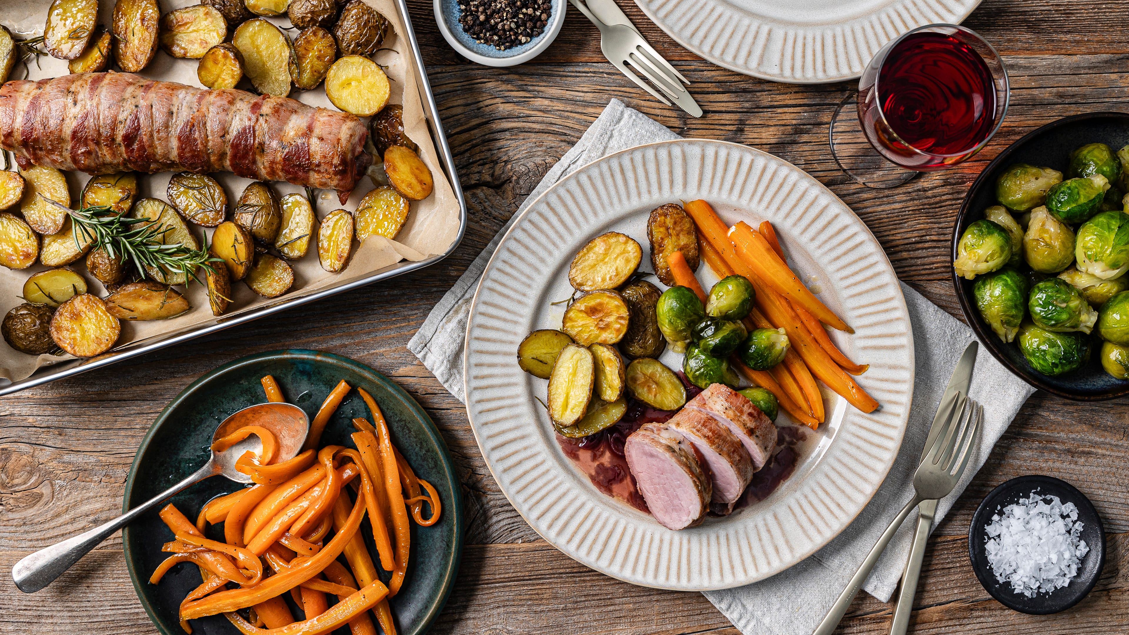 Zugegeben, die Zubereitung der köstlichen Beilagen ist etwas zeitaufwendiger: Drillinge, Rosenkohl, karamellisierte Karotten und Rotwein-Soße möchten geputzt, blanchiert bzw. angerührt werden. Möchten Sie etwas Zeit sparen, können Sie dieses Schweinfilet selbstverständlich auch mit anderen Beilagen servieren: Gut passen z. B. auch Spätzle, Kroketten, Reis oder Tiefkühl-Erbsen zu diesem leckeren Fleischgericht.