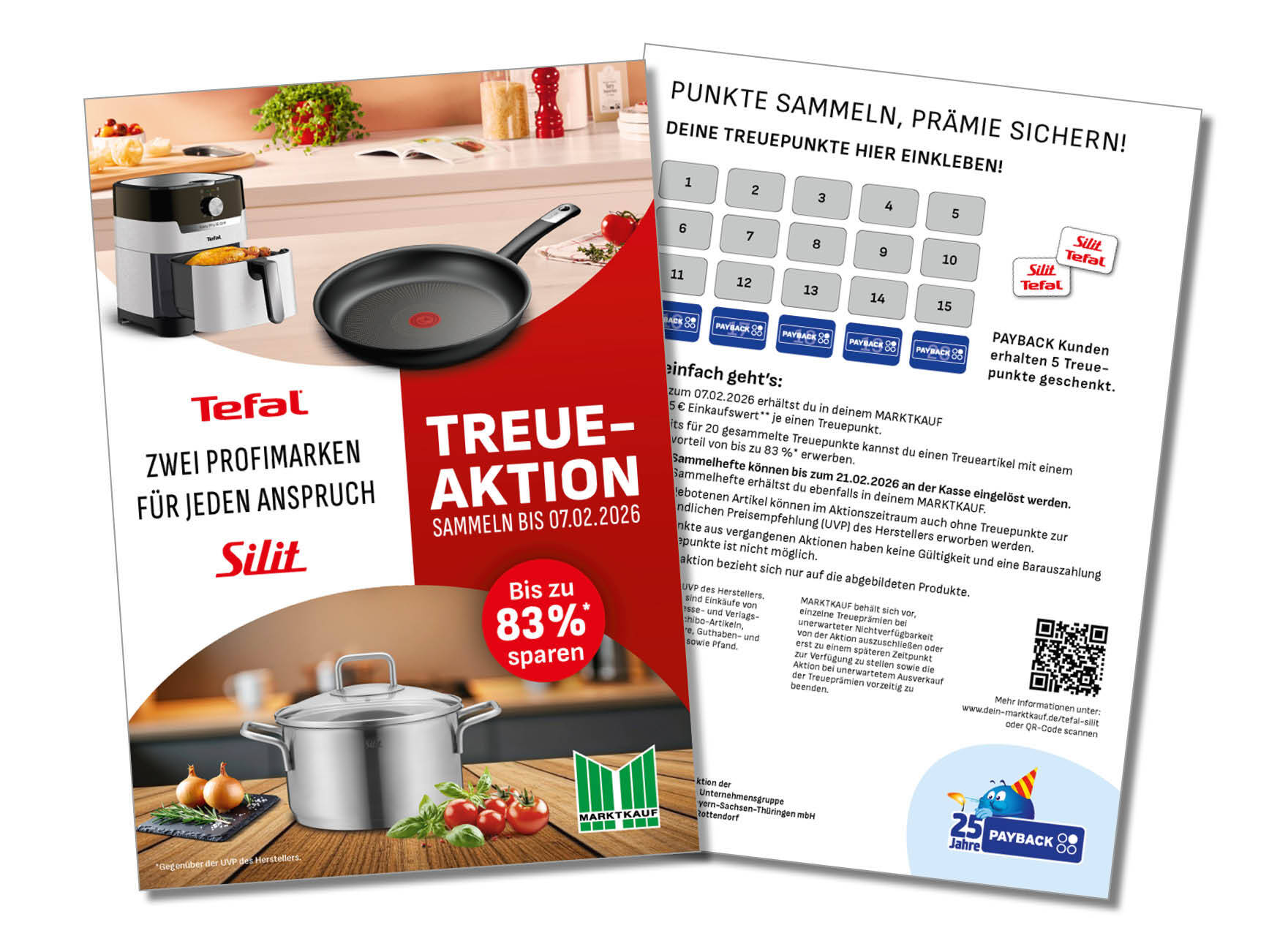 Sammle jetzt bei jedem Einkauf in deinem MARKTKAUF Treuepunkte und sichere dir exklusive Rabatte auf Produkte von Tefal und Silit. Zwei starke Marken, eine Aktion – für Qualität, die du schmecken kannst!