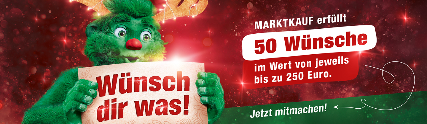 Ob für dich, deine Liebsten oder jemanden, dem du einfach eine Freude machen willst – wähle einen Wunschartikel aus dem MARKTKAUF-Sortiment, füll hier den Wunschzettel aus indem du unten im Teilnahmeformular deinen Wunsch mit Preis eingibst. Und mit etwas Glück wird dein Wunsch wahr.
